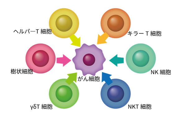 一部の血液がんを除くほぼすべてのがん種に対し、患者様ご自身の免疫細胞を増殖・活性化させて攻撃力を高める「6種複合免疫療法」(6種類の免疫細胞を約300倍増殖)の提供も行っています。