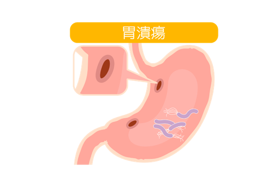 胃酸の攻撃力と胃粘膜の防御力のバランスが崩れ、自分の胃壁が消化されて深くえぐれてしまった状態です。